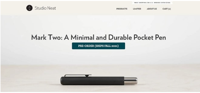 वे अपने उत्पाद विचारों को निधि देने के लिए किकस्टार्टर का उपयोग करते हैं। इसके अलावा, स्टूडियो नीट वेबसाइट में ईकामर्स गेम को समतल करने के लिए यह सब - स्पष्ट सीटीए, आसान नेविगेशन और सार्थक कॉपी (वीडियो सामग्री सहित) है।